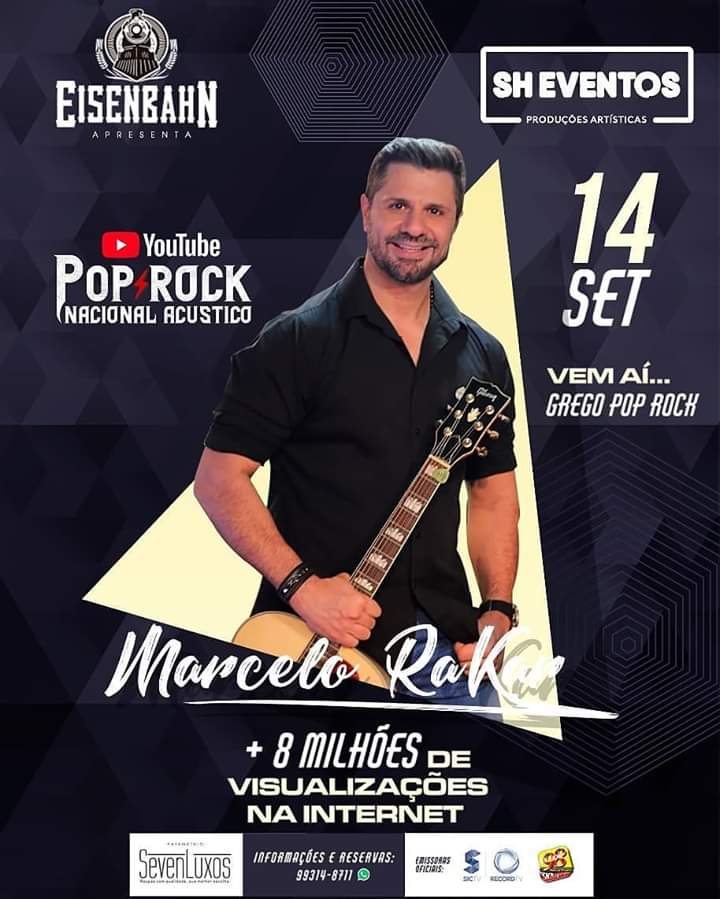 É neste sábado dia 14 de Setembro, muito Rock no @Gregooriginal!!! Vem aí, 'Grego Pop Rock' nacional acústico com Marcelo Rakar e Banda que é fênomeno na internet com mais de 8 milhões de visualizações. E ainda, você pode curtir com aquele chopp, petiscos e muito mais que vai fazer com que seu sábado seja sensacional! Para informações e reservas, no número 69 99314-8711