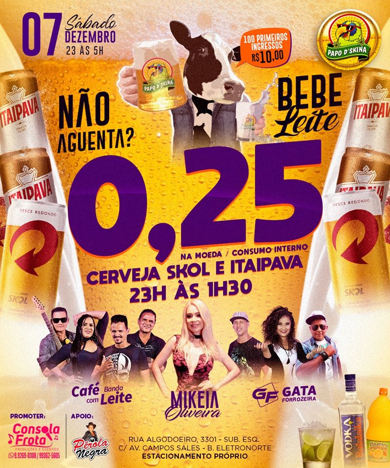 Neste sábado (07), a partir das 23h o Papo D' Skina conhecido como 'Paposo', vai realizar mais uma festa organizada por Consola Frota - Produções e eventos com apoio da Pérola Negra. Será uma noite de muito forró, atrações e promoções para você aproveitar.