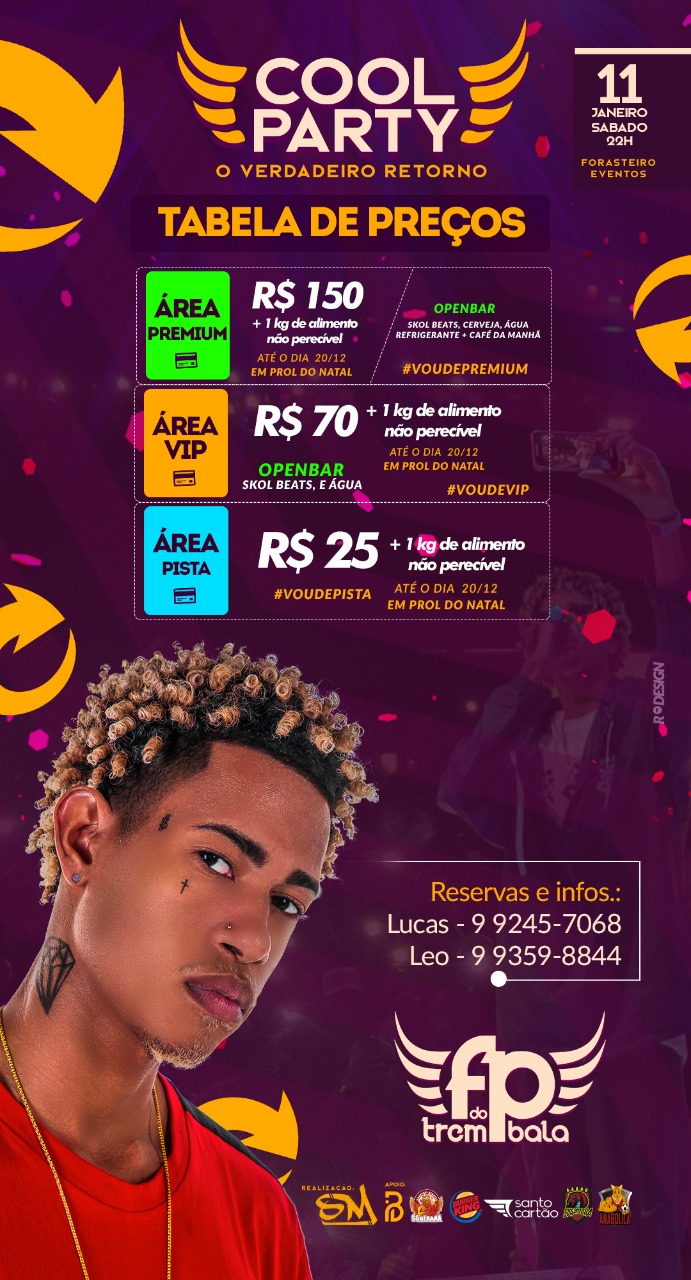 Dia 11 de janeiro de 2020, acontece a 3ª edição da Cool Party a partir das 22:00 no Forasteiro Eventos.