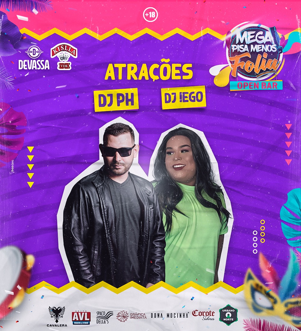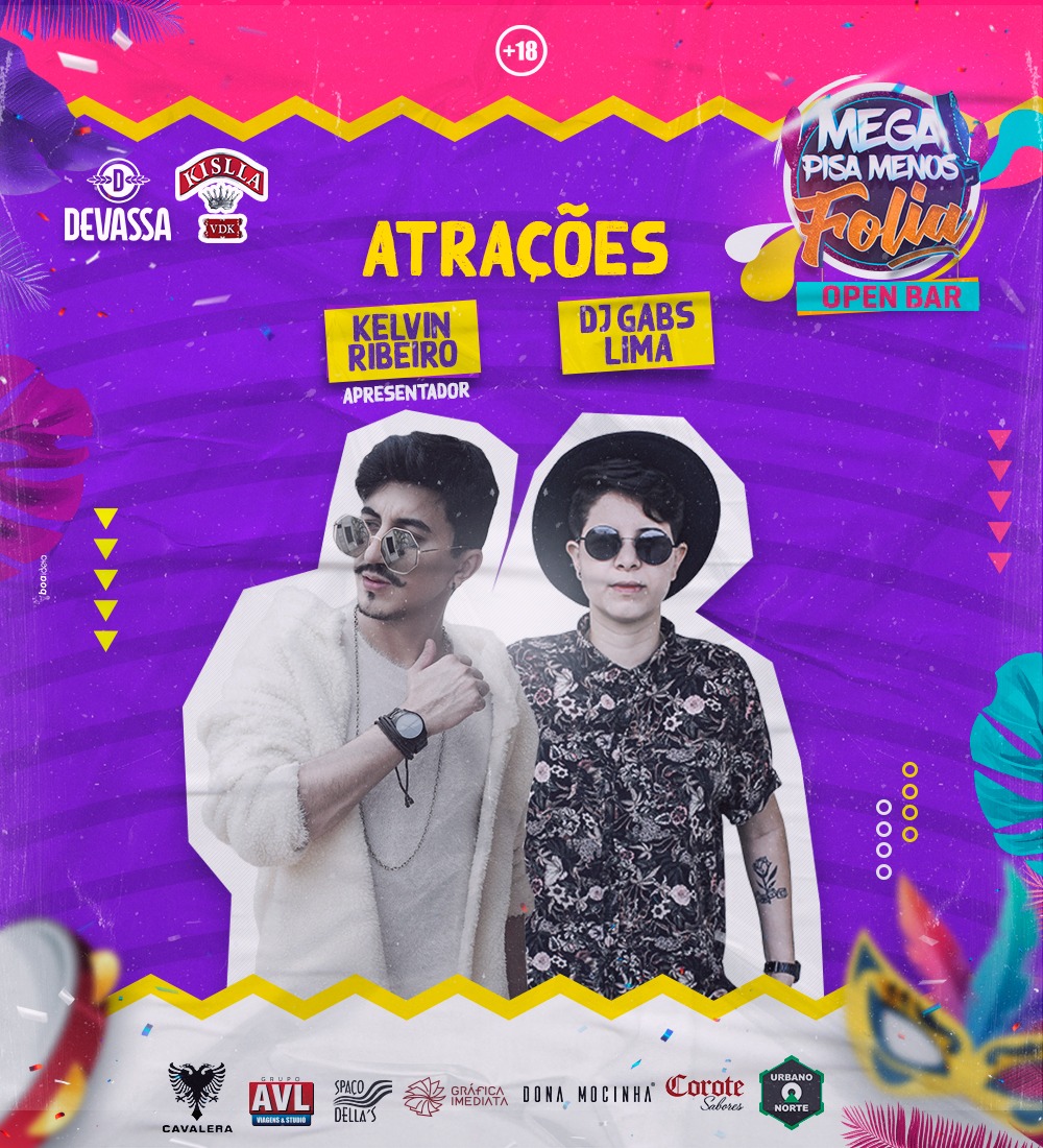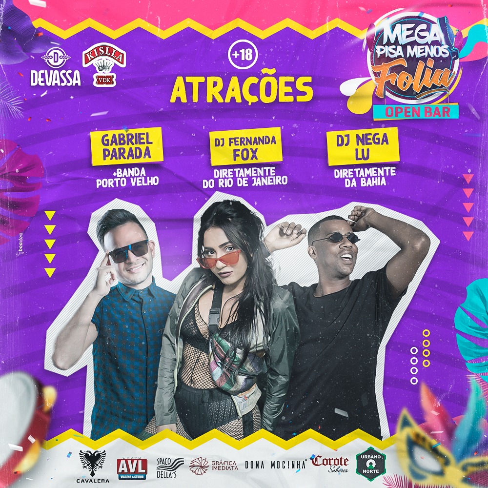 O carnaval está chegando e com ele vem aí a 1ª Mega Pisa Menos Folia, mais uma festa da Pisa Menos com uma super estrutura e o melhor open bar para você curtir a noite toda.