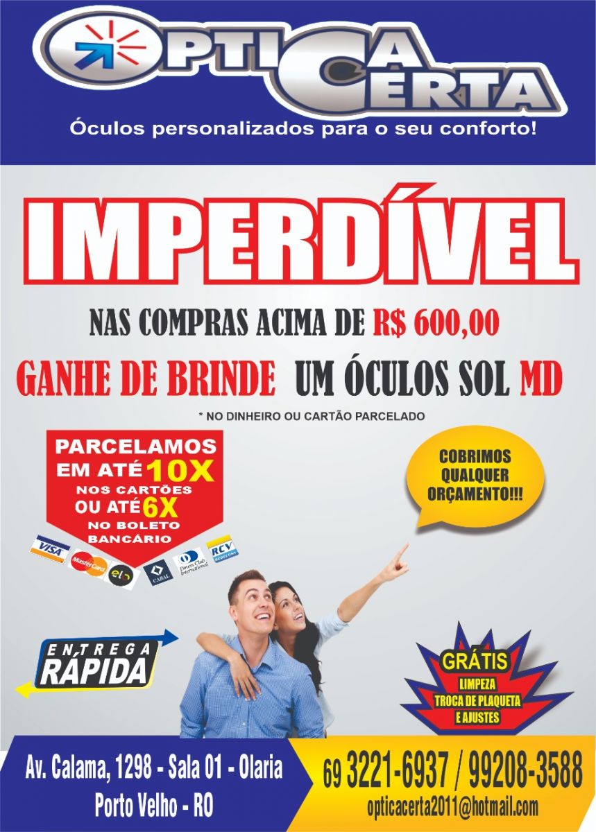 Óptica Certa é a escolha ideal para seu conforto e tem três lojas em Porto Velho.